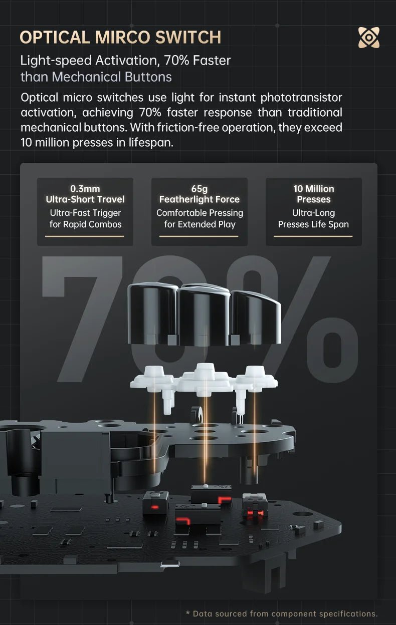 Light-speed Activation, 70% Faster than Mechanical Buttons