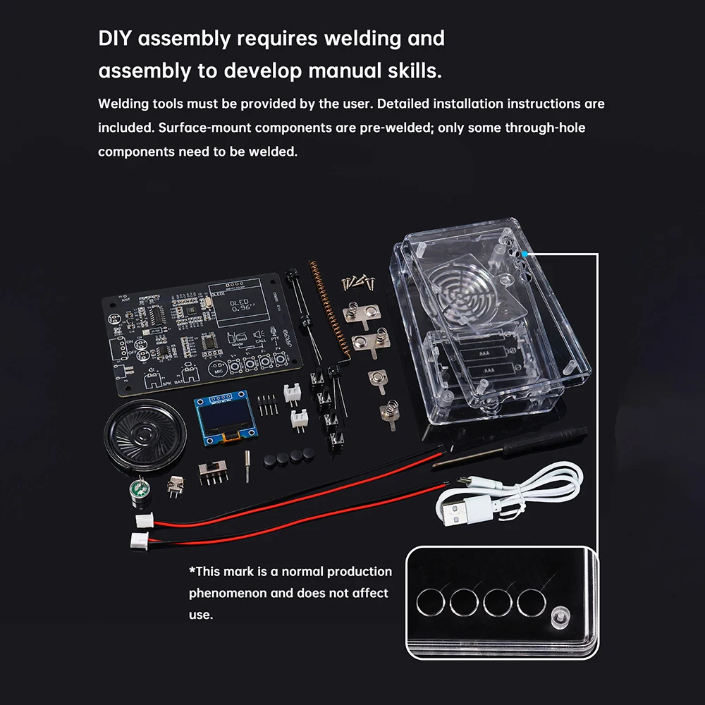 Note: This DIY kit requires self-assembly through soldering, which helps develop hands-on skills. Soldering tools must be provided by the user, and detailed installation instructions are included.