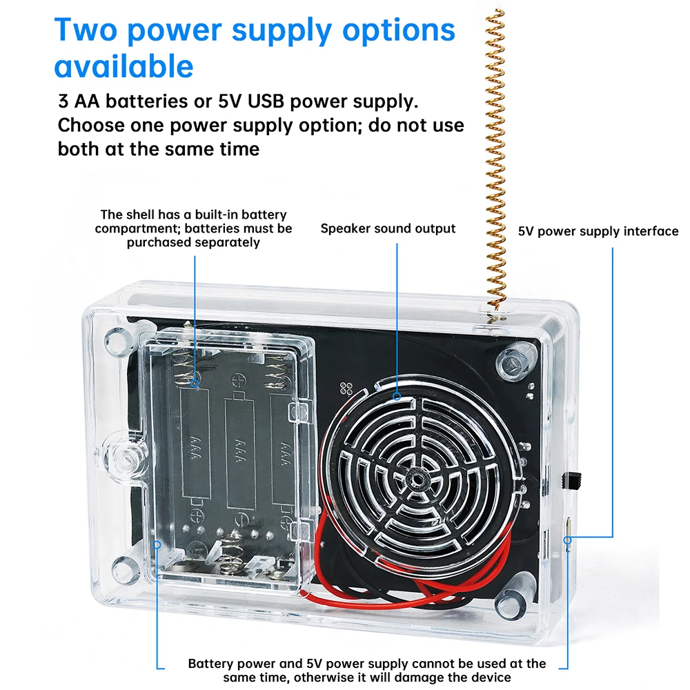 2. Equipped with the RDA5807 radio chip, offering advantages such as noise cancellation, bass enhancement, high sensitivity, low noise, and strong interference resistance