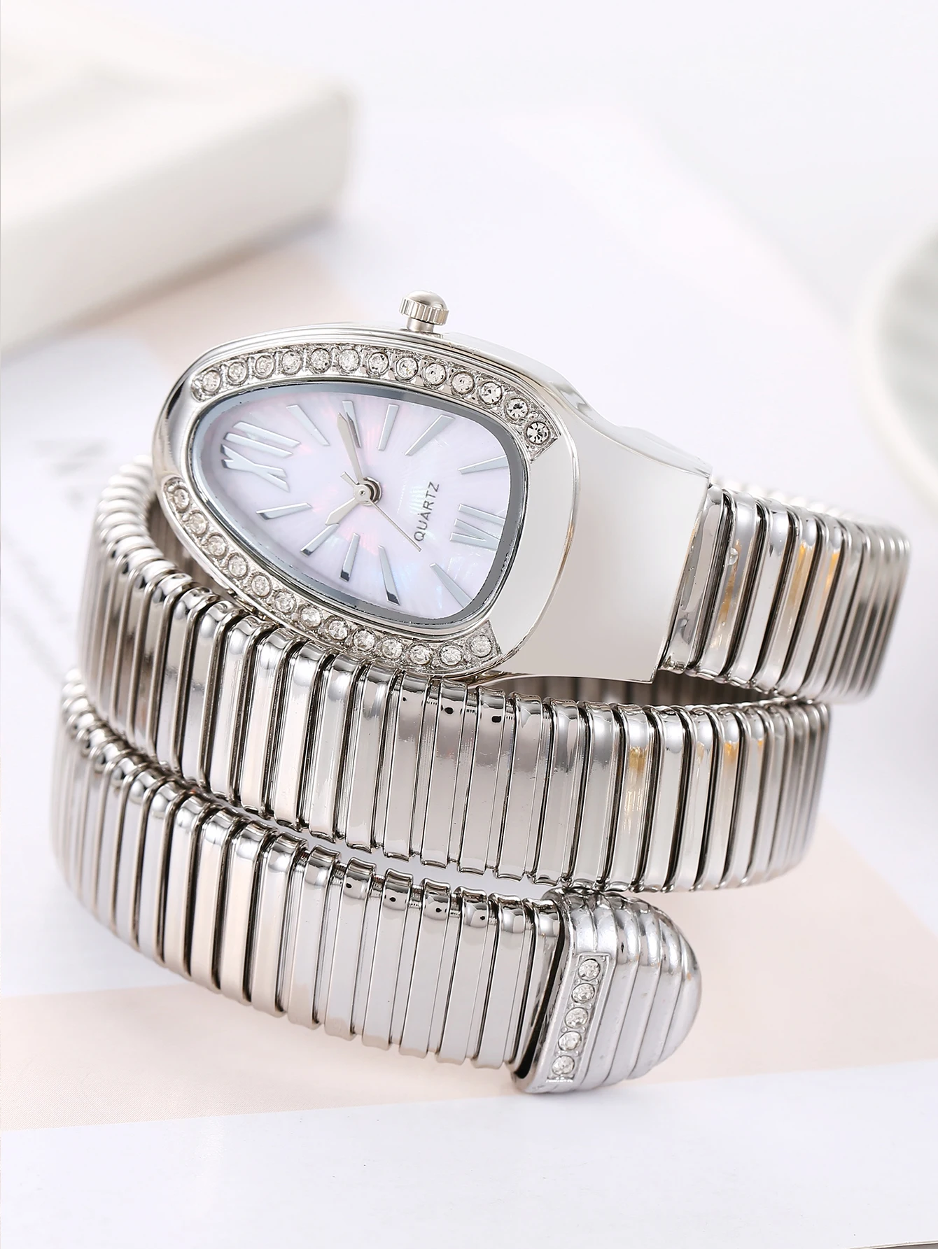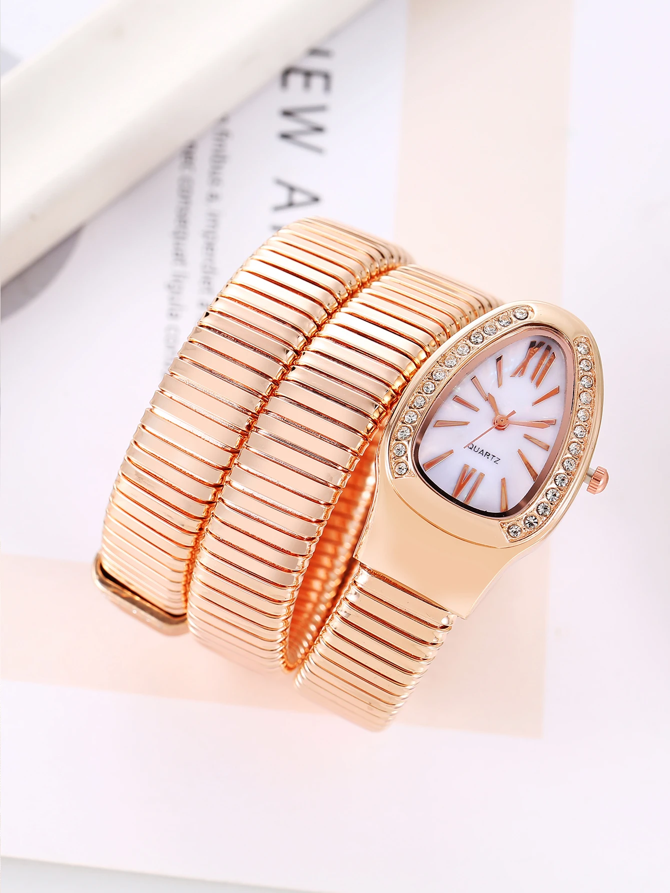 1 piece diamond studded elastic winding snake shaped exquisite wristwatch